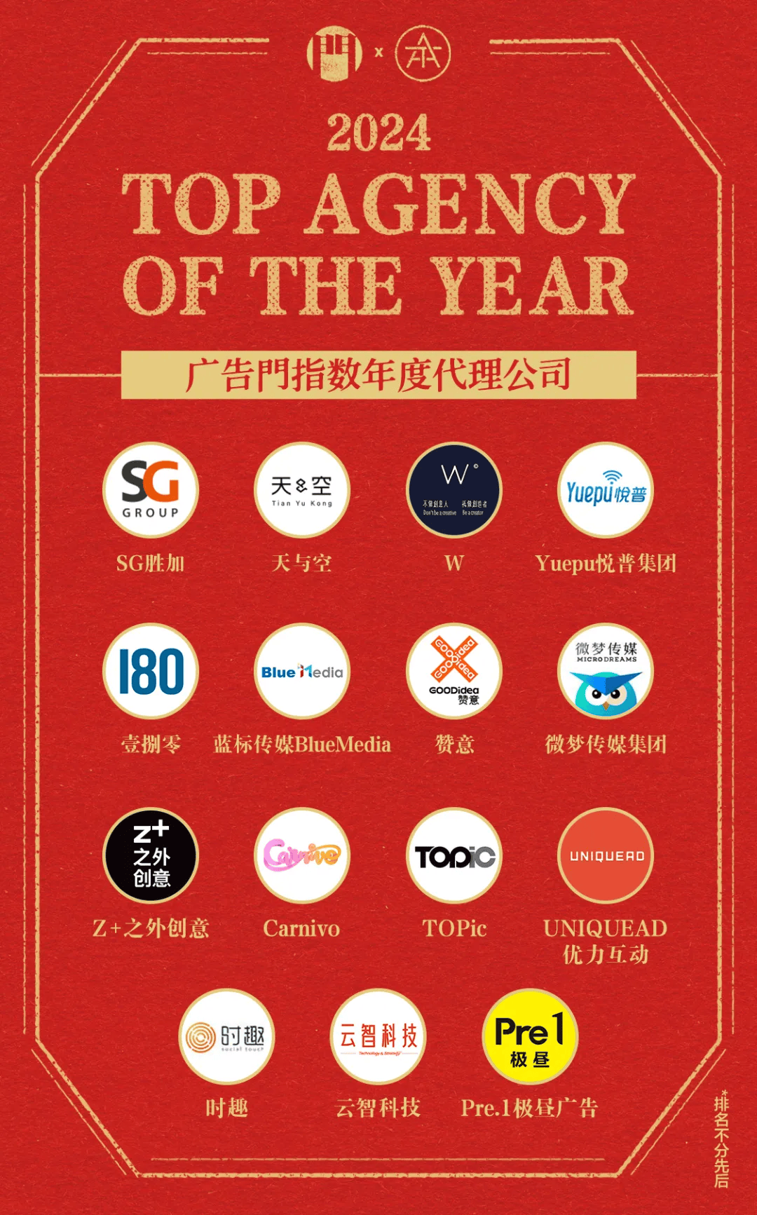 尽管行之不易,但当我们复盘广告门代理商指数的全年数据时,依然发现了一批代理公司——他们拒绝标准化的平庸,敢于对抗算法的冷酷,用生意逻辑 + 创意美学为品牌撕开了一道增长的口子。