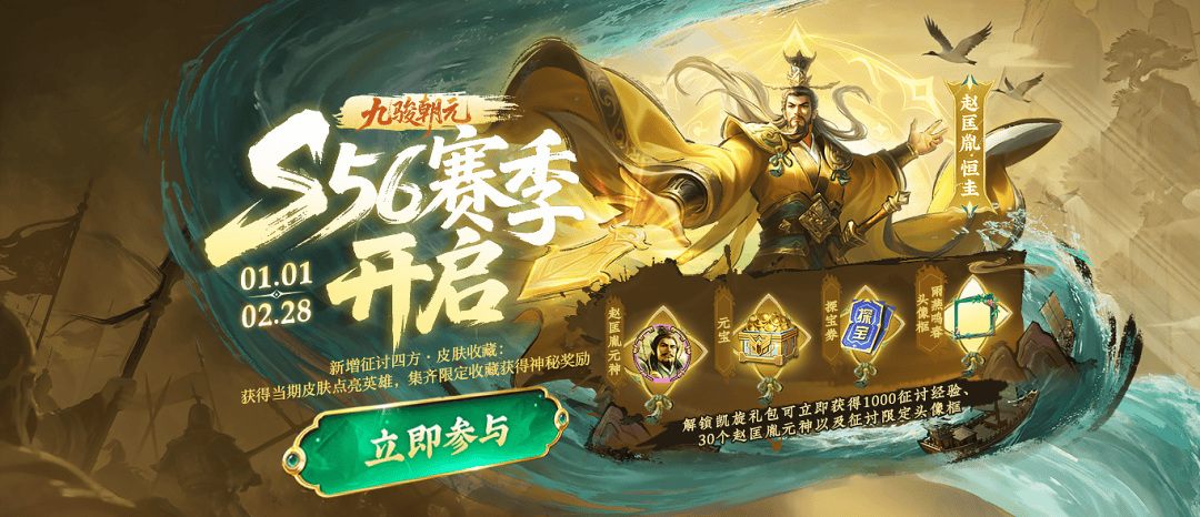 丰厚的活跃任务奖励!完成每日任务的同时,领取活跃奖励及征讨经验,奖励翻倍得!限定头像框、赵匡胤元神、元宝、探宝券、赛季皮肤等好礼等你来拿!同时,征讨四方活动在2026年1月起奖励调整: